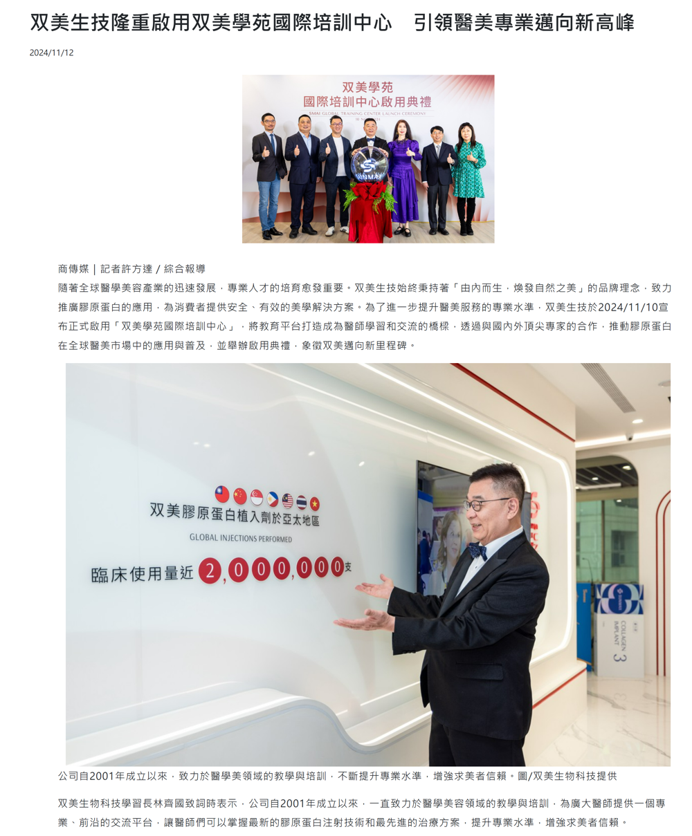 【理財周刊】双美生技隆重啟用双美學苑國際培訓中心 引領醫美專業邁向新高峰